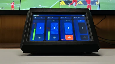 7-дюймовый сенсорный экран высокого разрешения служит основной панелью управления. Дисплей отображает все настройки системной связи и позволяет вносить корректировки в режиме реального времени. Пользователи могут настраивать систему и подключенные к ней гарнитуры в соответствии с требованиями конкретной задачи. Например, звук коммуникации судей на поле можно установить на уровне громкости 30–40% для гарнитур всех судей в качестве фонового, в то время как конкретный отдельный сотрудник может отслеживать тот же аудиопоток на громкости 100%.