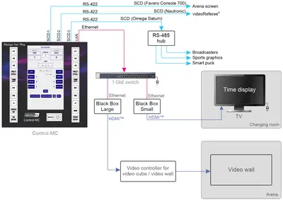 Control-MC обеспечивает плавный переход без необходимости установки конверторов. Он имеет три основных порта MCD (match-controller data), каждый из которых можно настроить для работы с протоколами данных наиболее распространенных типов матч-контроллеров. Все системы, которые работали с предыдущим матч-контроллером, будут работать и с Control-MC.